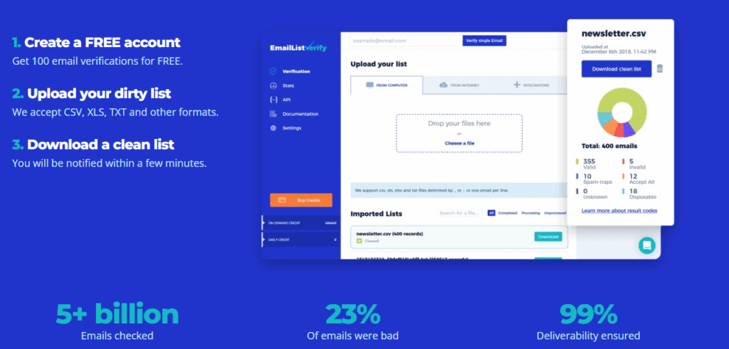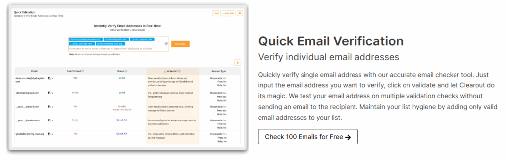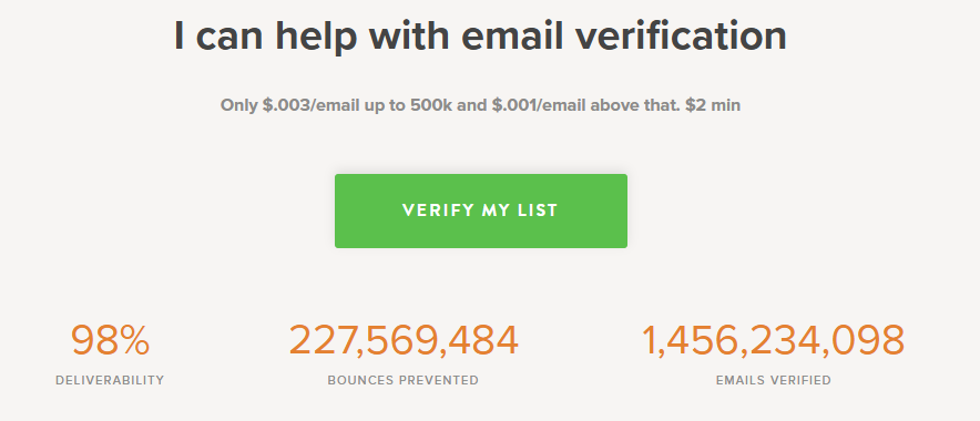 Pricing: 100 free verifications, pay-as-you-go starts at $4 for 1,000 emails.