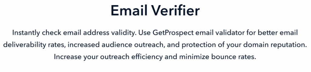 GetProspect offers a finder + verifier bundled together, with a strong emphasis on LinkedIn-based contact sourcing. The verifier is simple but dependable for light-to-moderate use. The main appeal is convenience: find leads → verify → export → outreach.