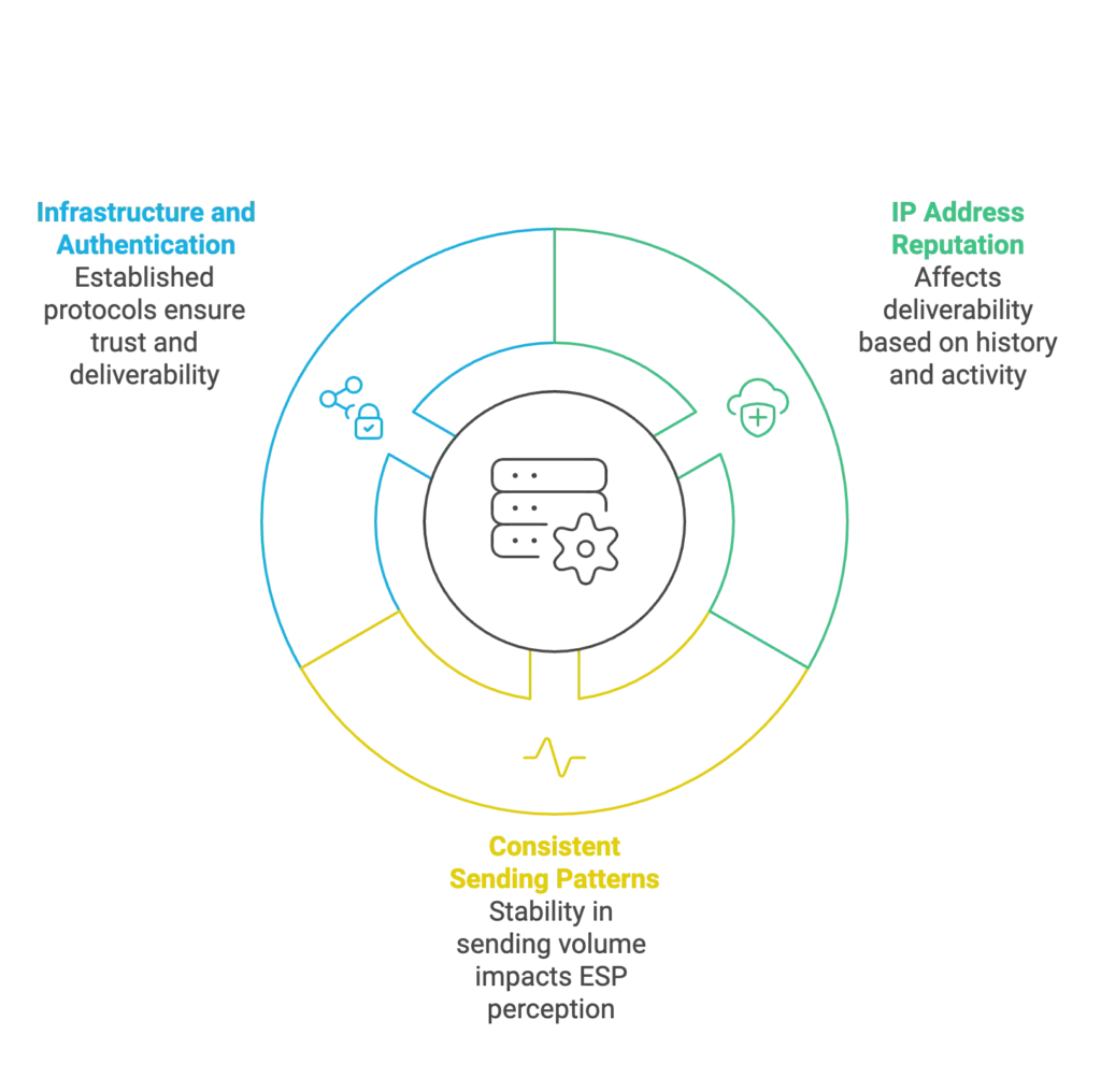 Server age itself isn’t a direct factor in email scoring, but there are related elements of server setup and history that play a role in establishing trust with email service providers (ESPs):